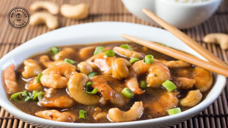 Turn the heat to medium-low and pour in the sauce mixture, then mix in the cornstarch mixture. Stir the sauce for 1 to 2 minutes to thicken, then add the cashews and pepper (to taste). stir to coat everything with the sauce. You can add a little water if the sauce looks too thick. Add the shrimp to the sauce.