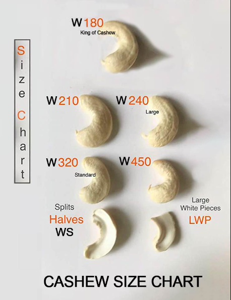 It is important to know the different quality and cost options in order to know what you are looking for. If you are looking for a simple nut that is cheap and plentiful then the W-320 is a good option but if you are looking for a high-quality cashew nut then the W-180 is what you want.