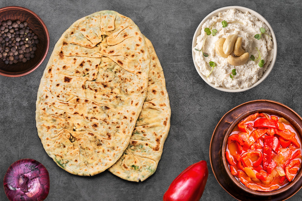 Remove from the pan and cover with a kitchen towel to keep warm while you cook the rest of the dough. Serve Lecsó with Flatbread & Cashew spread.