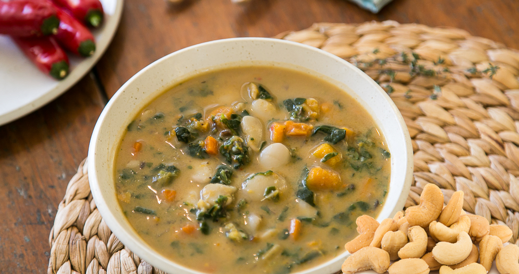 - Add the pre-soaked and drained cashews and chopped spinach to the pot. Simmer for another 10 minutes.