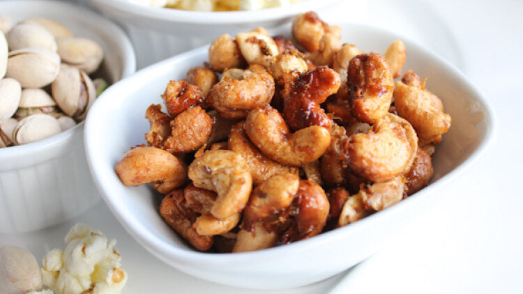 Try this Orange Spiced Cashews and Peanuts combined with light corn syrup and finely grated orange zest that gives a unique flavor to the cashews.