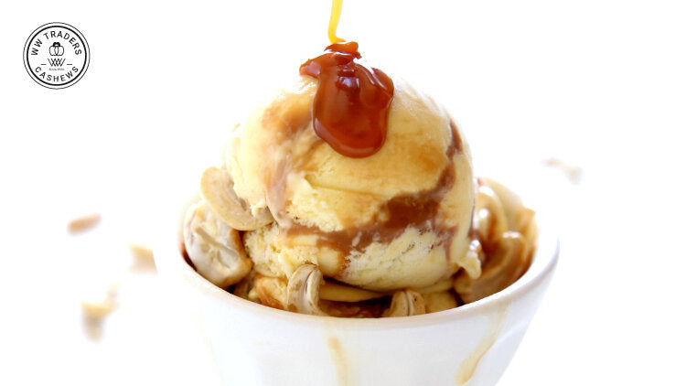Caramel Cashew Ice Cream is rich and creamy cashew infused ice cream studded with roasted cashews and swirled with caramel that gives crunch to every bite.