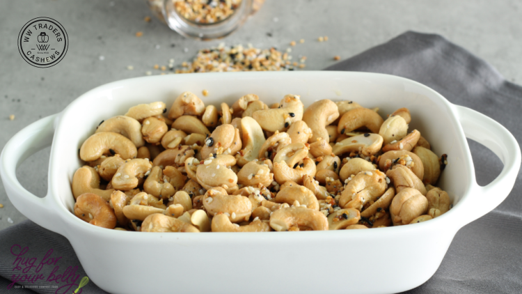 Check out this detailed recipe Everything Bagel Cashews, very quick and easy to prepare. Just mix cashews, olive oil, everything bagel seasoning and bake for 5 minutes and your recipe is done.