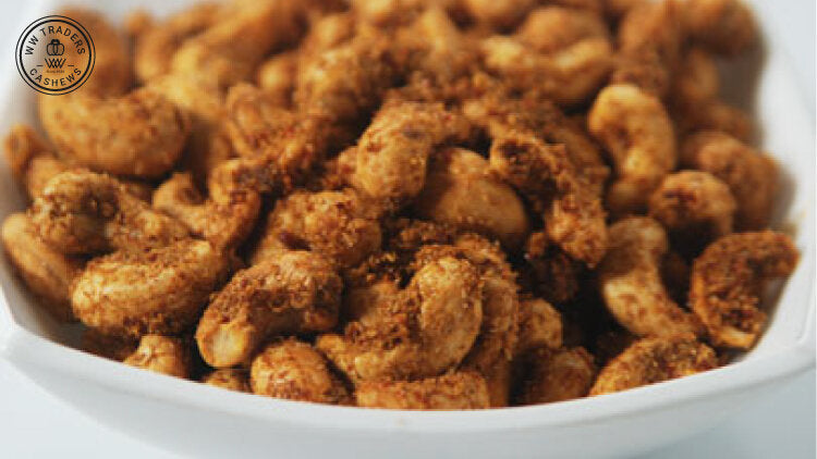 Sweet + Spicy Crispy Cashews are perfectly roasted and seasoned with salt and freshly ground black pepper powder that gives you a sweet and spicy flavor to the nuts.