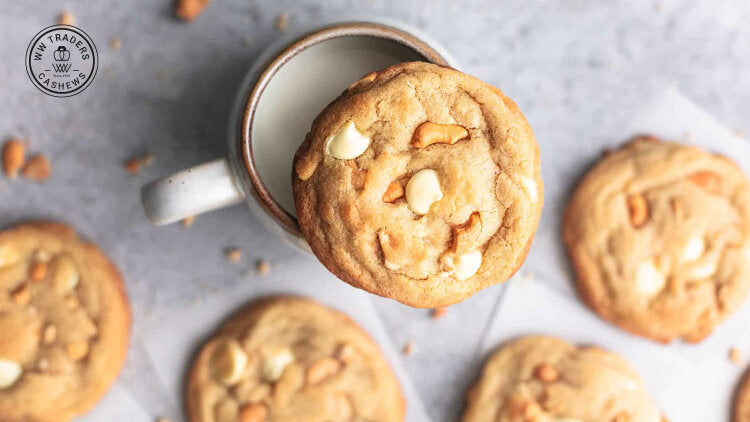 Chewy White Chocolate Cashew Cookies blended with sweet white chocolate and creamy cashew nuts. These are plant-based, vegan, super soft and ultra-chewy.