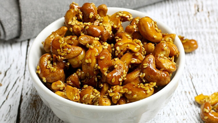 Ingredients: 2 tablespoons honey ¼ teaspoon salt ¼ teaspoon cayenne pepper 1 tablespoon toasted sesame seeds 1 cup cashews whole or halves work best Instructions: Preheat the oven to 325...