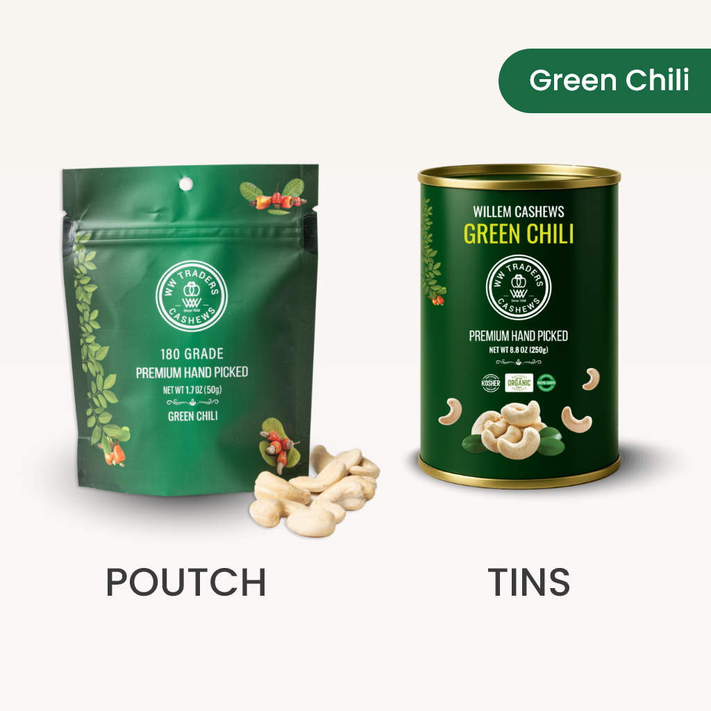 Discover the perfect fusion of premium cashews and zingy green chili with our Natural Premium Air Roasted Green Chili Flavored Cashews. A uniquely satisfying and wholesome snacking experience for the discerning palate.
